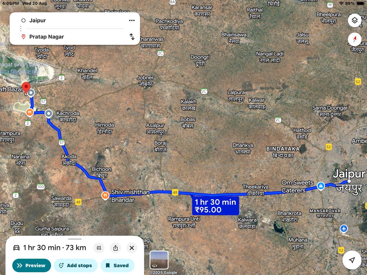 35 minutes distance from Chomu Airport